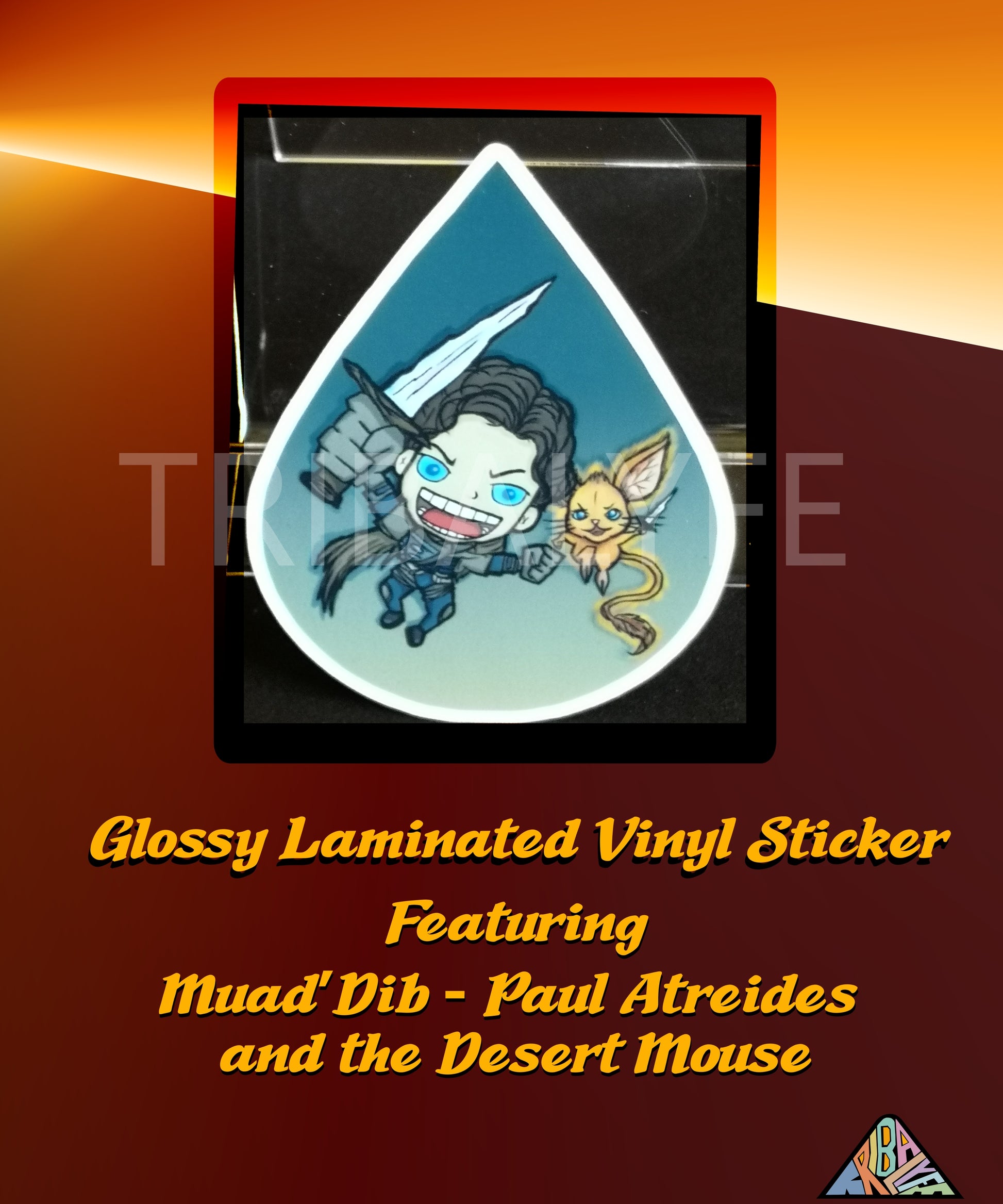 One (1) Glossy Laminated Vinyl Sticker Featuring Paul Atreides and the Desert Mouse